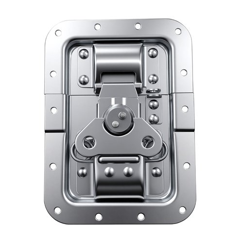 This Large butterfly latch is an indispensable component in the manufacturing of flight cases. It comes with an Offset, which can be embedded in clamped onto aluminum materials.  The advantage of this butterfly latch is that it closes automatically, without requiring user pressure.